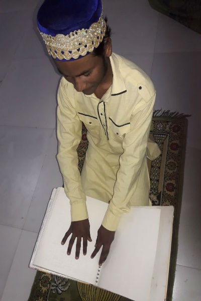 He has learned Arabic Braille from our madarsa now "he is pursuing Qari course" alhamdolillah!